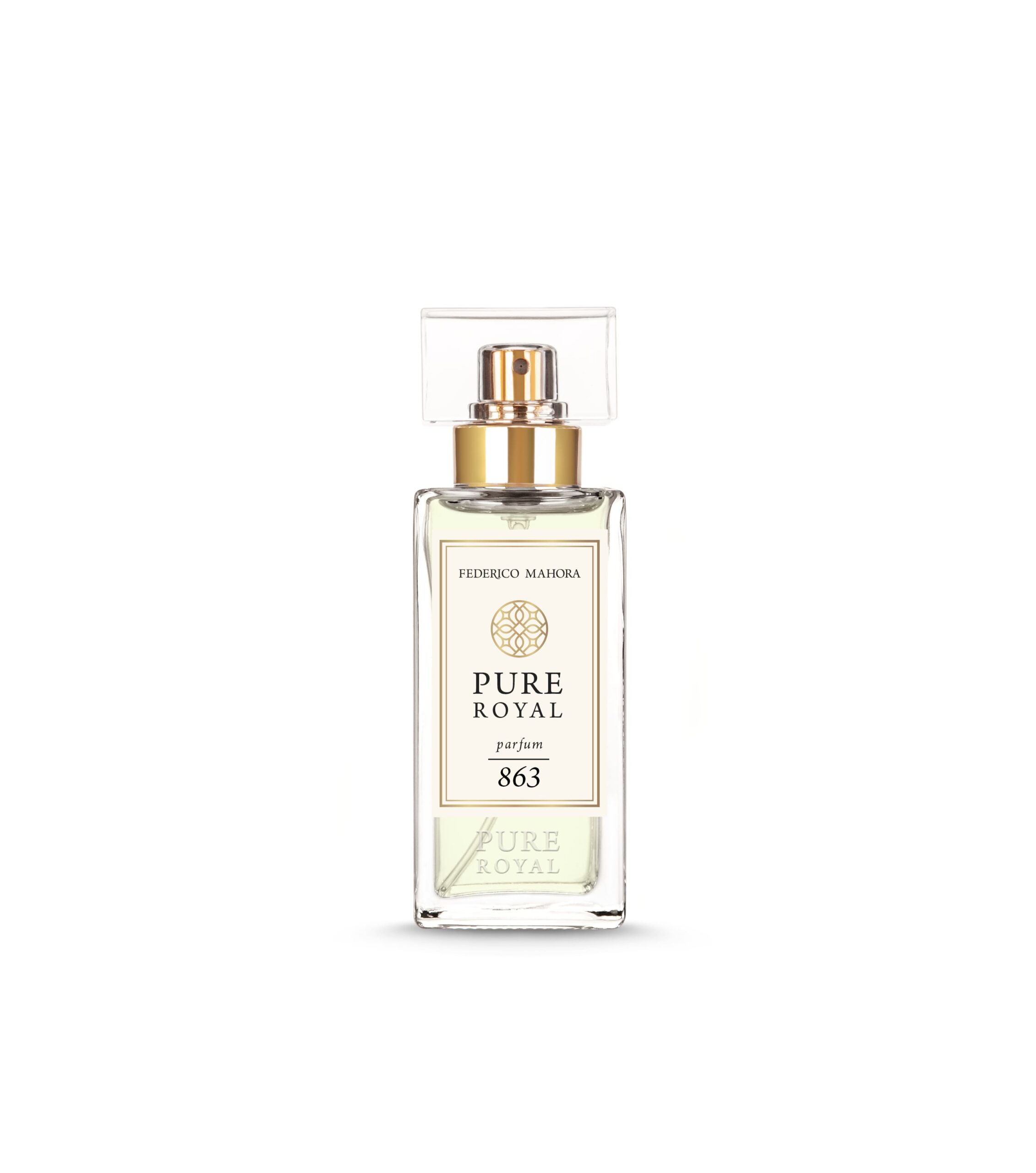 Pure Royal 863 – šis kvapas yra viliojantis šipro ir gėlių natų derinys. Galvos natos atsiskleidžia ryškiu citrusinių vaisių junginiu, po kurio seka sodri magnolijos, karčiųjų apelsinų ir osmanto gėlių širdis. Pačiulių, konjako ir muskuso bazė sukuria karštą, viliojantį su drąsiu pareiškimu šleifą.